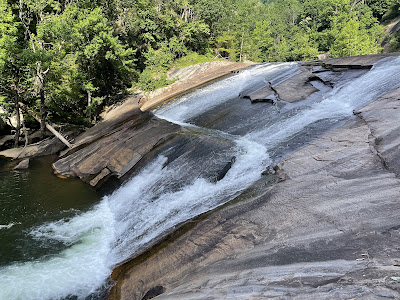 At the end of the trail there's a place called sliding rock and there you can swim and slide on the rock. We get to this waterfall thing it sort of looks like a slide. We're wondering if we're at the end or not. |
